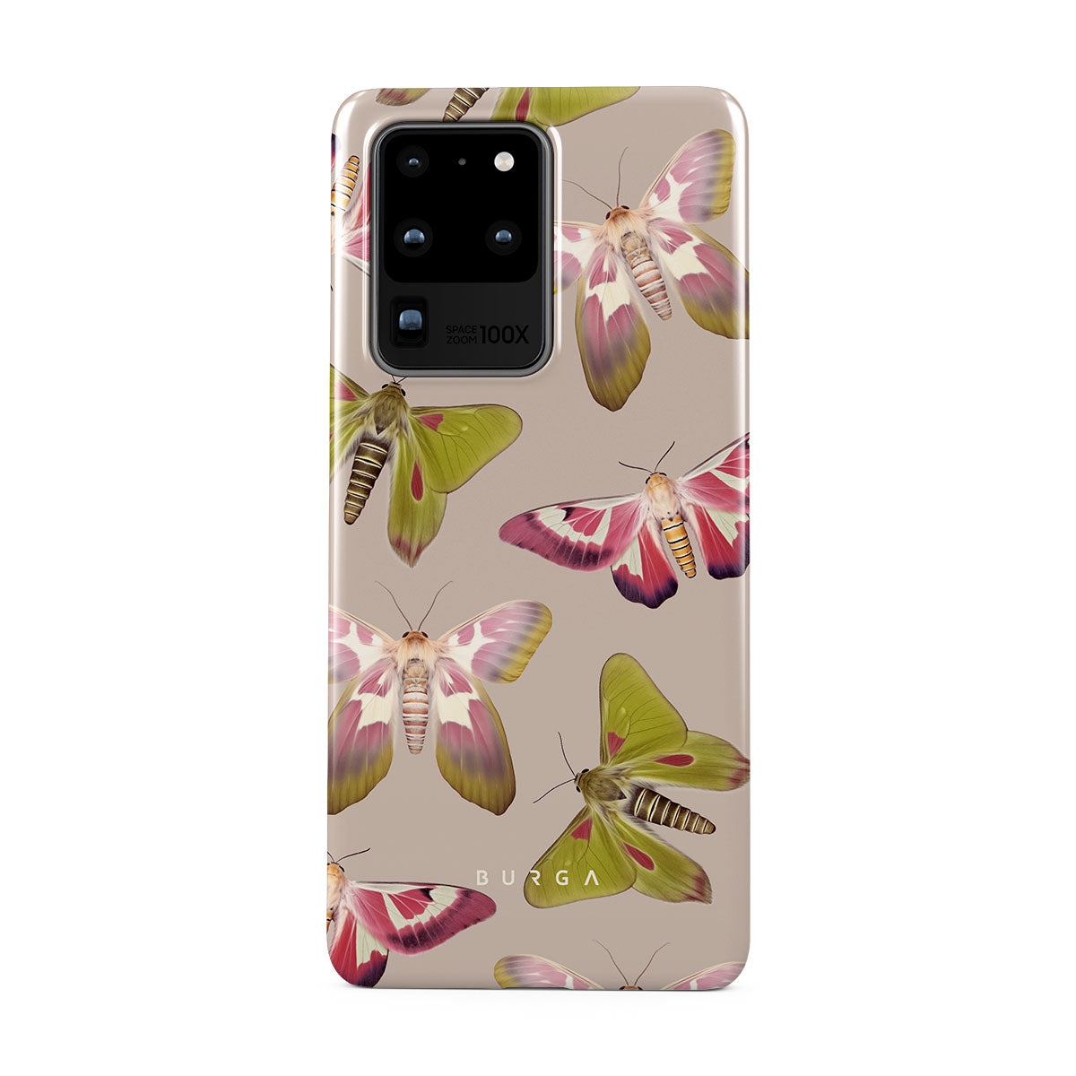 A tapestry of muted-toned moths — their wing patterns echoing tales of transformation and resilience found in nature's delicate beings. These moths, wings wide, serve as silent mentors, teaching us that every phase of life and change holds its own magic and mystery. Discover our Metamorphosis Samsung Galaxy S20 Ultra 4G / 5G phone casedesign.