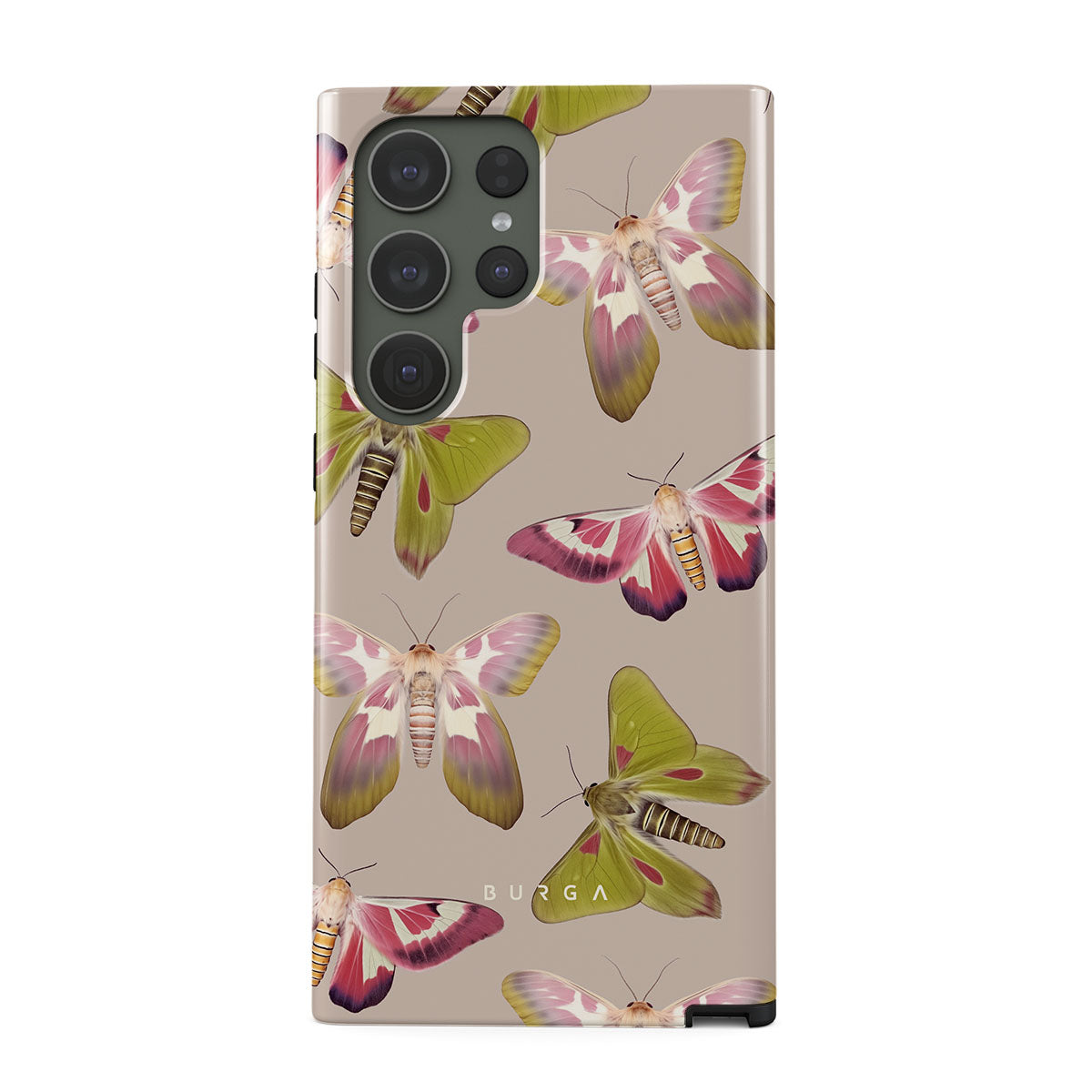 A tapestry of muted-toned moths — their wing patterns echoing tales of transformation and resilience found in nature's delicate beings. These moths, wings wide, serve as silent mentors, teaching us that every phase of life and change holds its own magic and mystery. Discover our Metamorphosis Samsung Galaxy S23 Ultra phone casedesign.