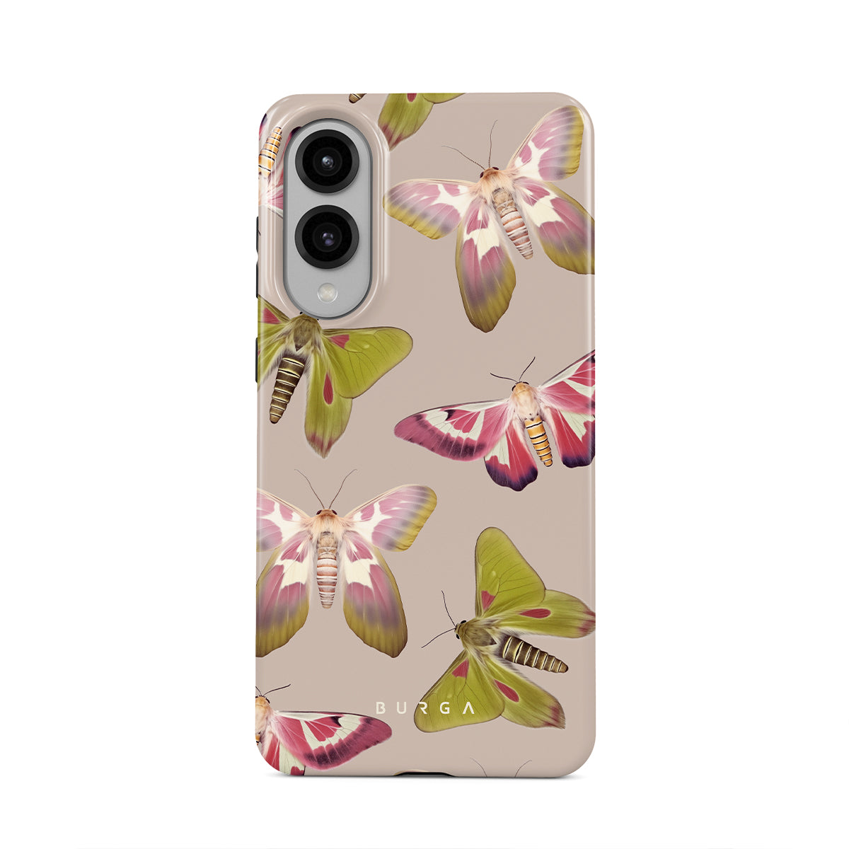 A tapestry of muted-toned moths — their wing patterns echoing tales of transformation and resilience found in nature's delicate beings. These moths, wings wide, serve as silent mentors, teaching us that every phase of life and change holds its own magic and mystery. Discover our Metamorphosis Samsung Galaxy S25 Edge phone casedesign.