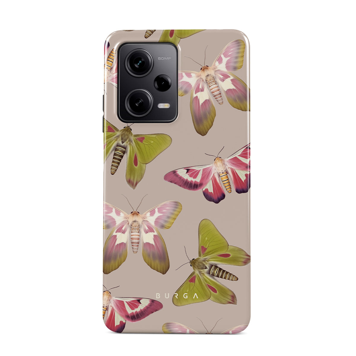 A tapestry of muted-toned moths — their wing patterns echoing tales of transformation and resilience found in nature's delicate beings. These moths, wings wide, serve as silent mentors, teaching us that every phase of life and change holds its own magic and mystery. Discover our Metamorphosis Xiaomi Redmi Note 12 Pro+ 5G phone casedesign.