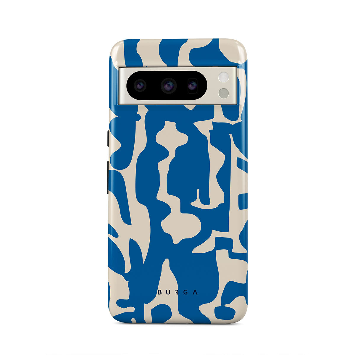 Indulge in the exquisite elegance of Mirage. Against a canvas of deep, enigmatic blue, luminous shapes gracefully disrupt the darkness, creating a captivating visual spectacle. Let this Google Pixel 8 Pro phone case be a symbol of your impeccable taste and magnetic charm.