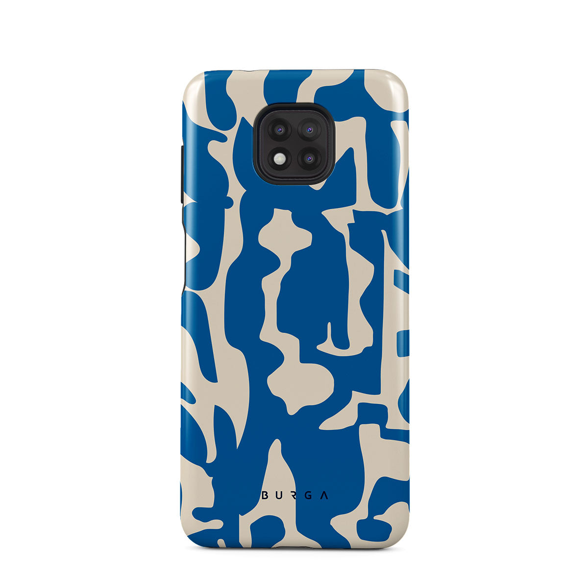 Indulge in the exquisite elegance of Mirage. Against a canvas of deep, enigmatic blue, luminous shapes gracefully disrupt the darkness, creating a captivating visual spectacle. Let this Motorola Moto G Power 2021 phone case be a symbol of your impeccable taste and magnetic charm.