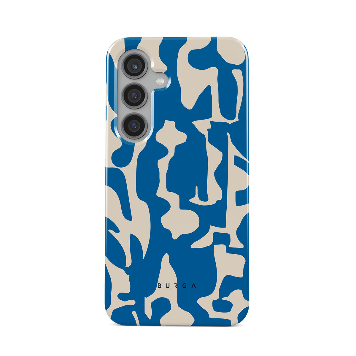 Indulge in the exquisite elegance of Mirage. Against a canvas of deep, enigmatic blue, luminous shapes gracefully disrupt the darkness, creating a captivating visual spectacle. Let this Samsung Galaxy S24 Plus phone case be a symbol of your impeccable taste and magnetic charm.