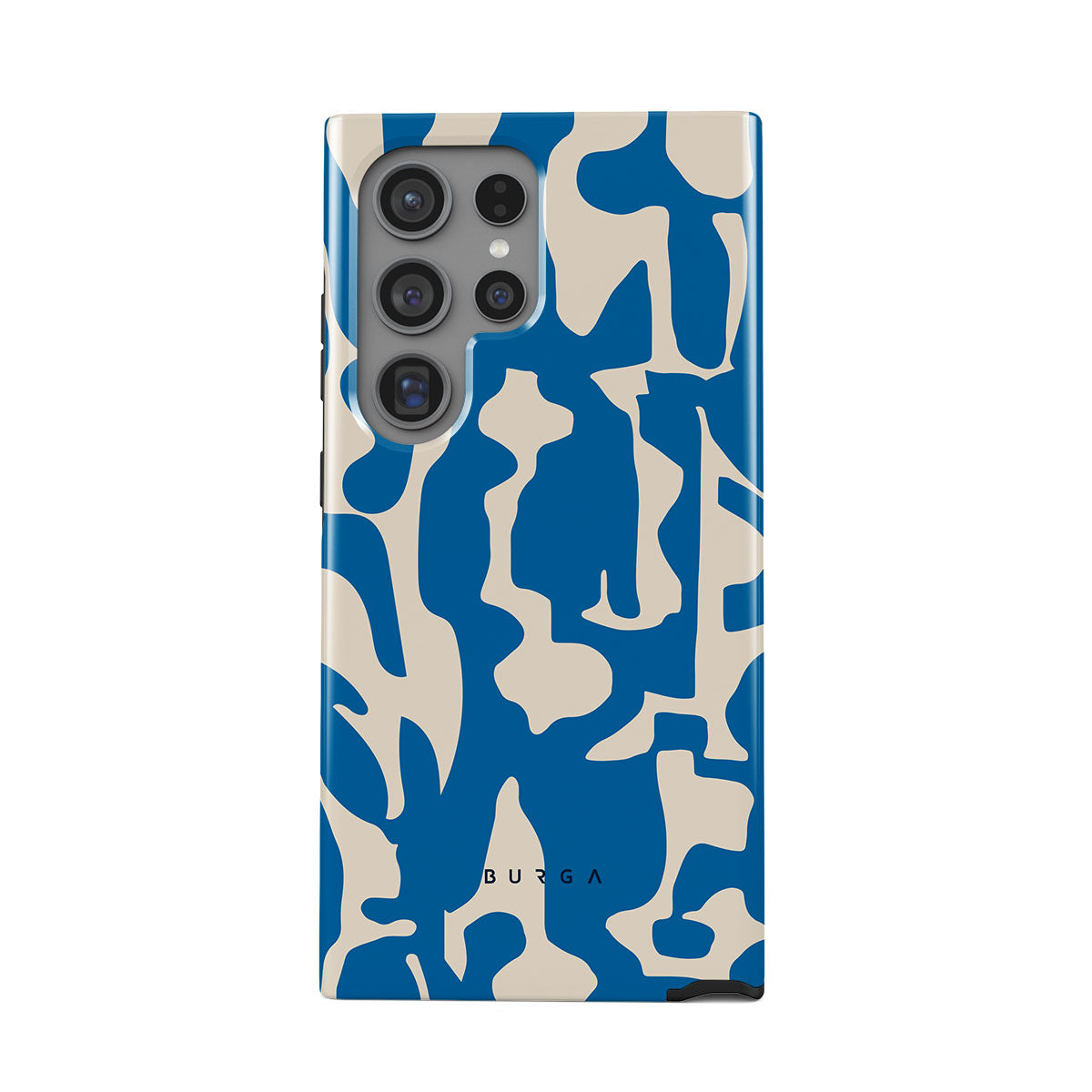 Indulge in the exquisite elegance of Mirage. Against a canvas of deep, enigmatic blue, luminous shapes gracefully disrupt the darkness, creating a captivating visual spectacle. Let this Samsung Galaxy S24 Ultra phone case be a symbol of your impeccable taste and magnetic charm.