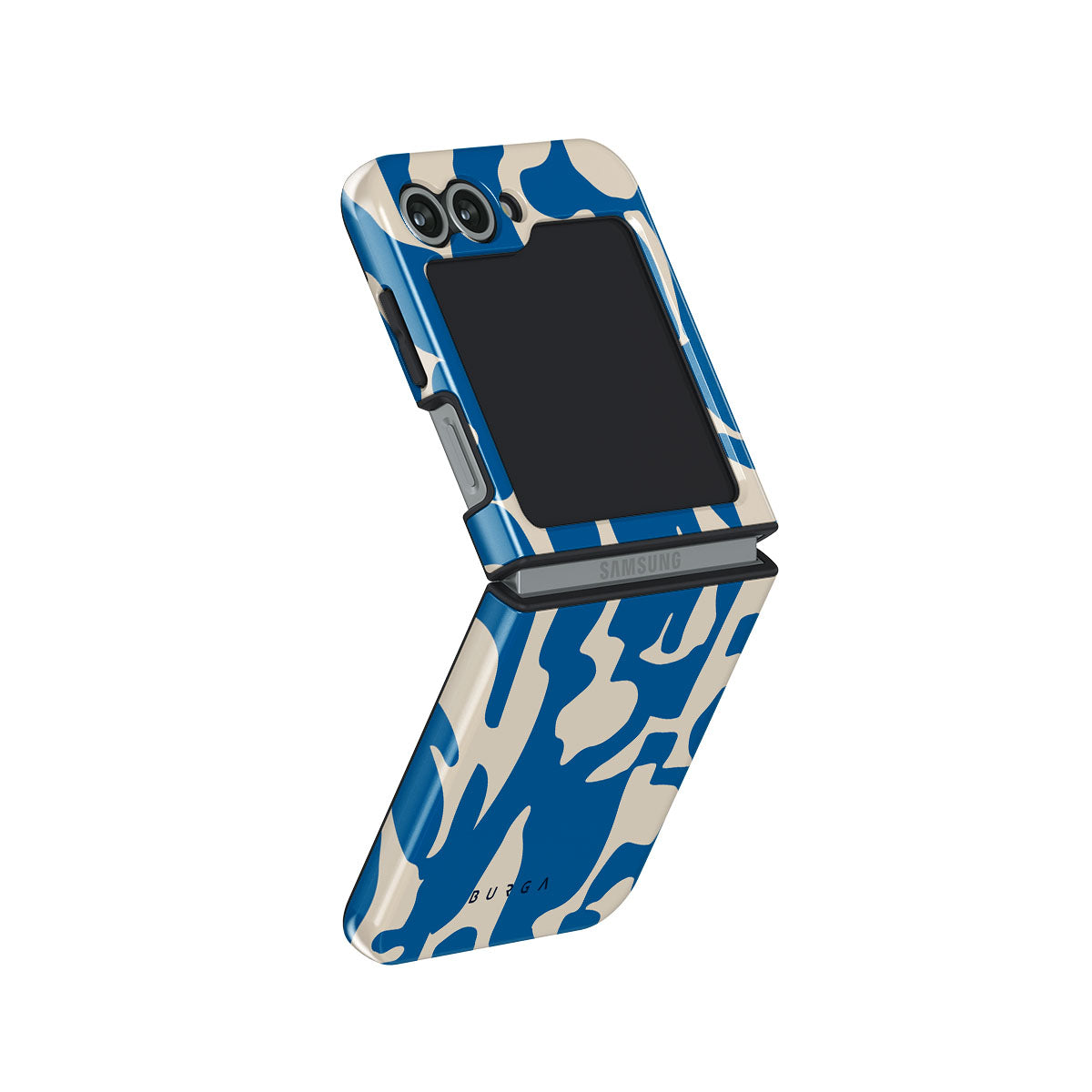 Indulge in the exquisite elegance of Mirage. Against a canvas of deep, enigmatic blue, luminous shapes gracefully disrupt the darkness, creating a captivating visual spectacle. Let this Samsung Galaxy Z Flip 6 phone case be a symbol of your impeccable taste and magnetic charm.