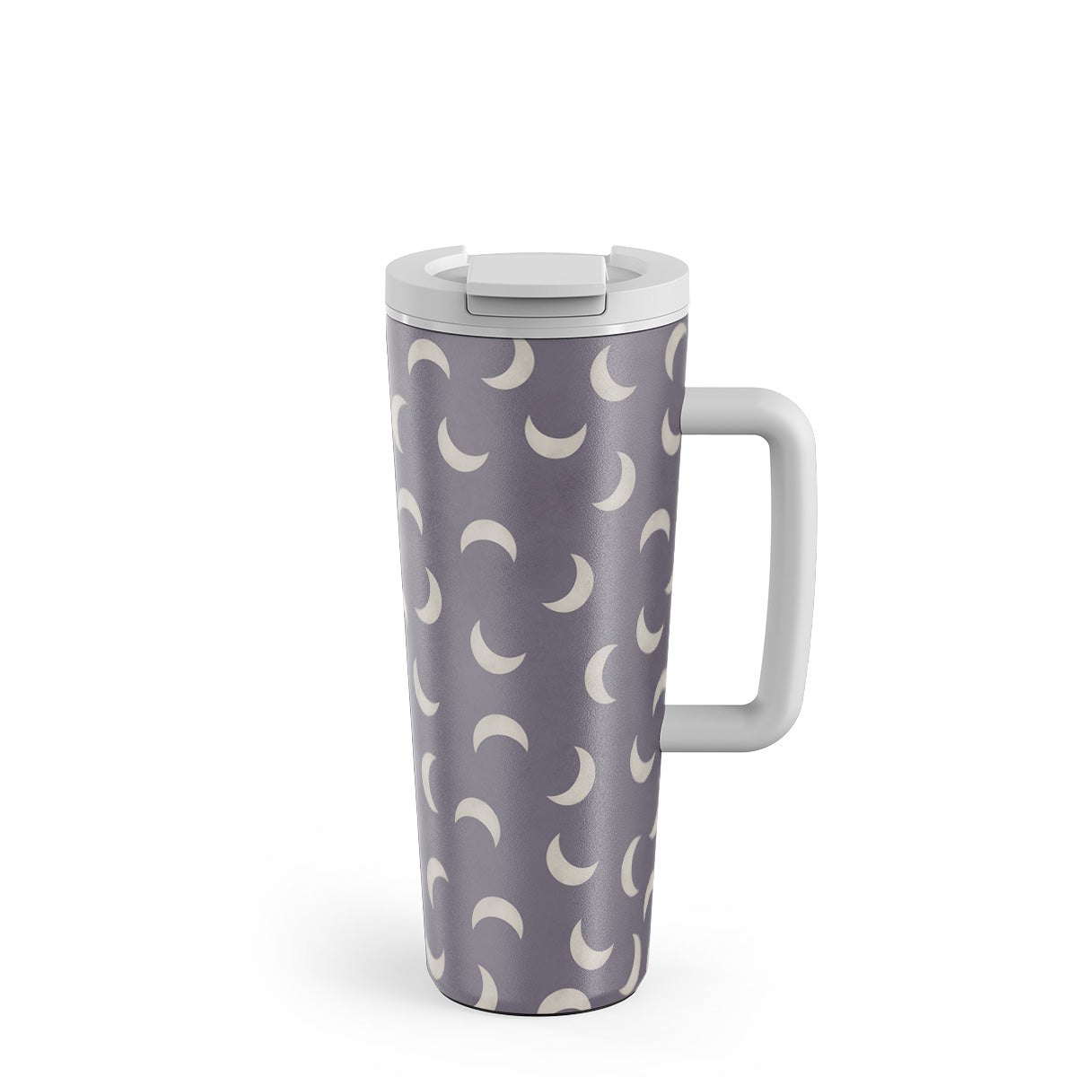 This design features: crescent moons, lunar cycles, cosmic energy, lunar eclipses.