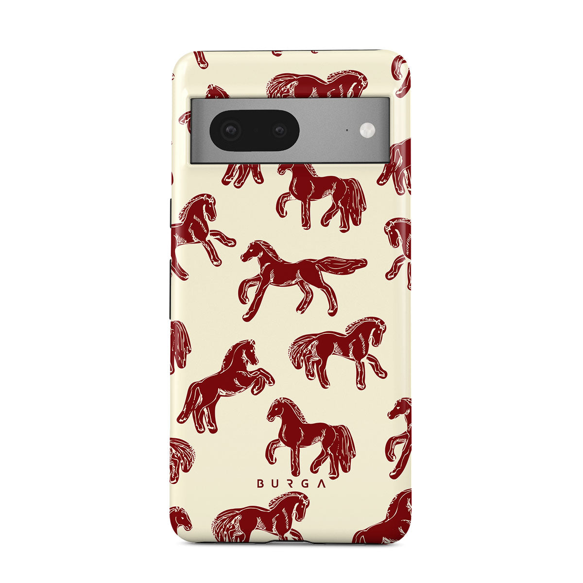 It's time to unleash your wild side with the Mustang design. Bold red horses gallop across a nude background, capturing the spirit of untamed adventure. This Google Pixel 7a phone case is perfect for the free-spirited souls ready to ride into the unknown.