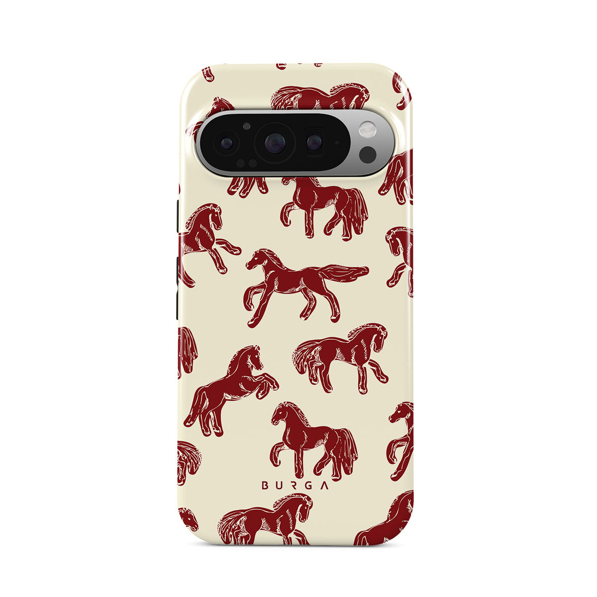 It's time to unleash your wild side with the Mustang design. Bold red horses gallop across a nude background, capturing the spirit of untamed adventure. This Google Pixel 9 Pro XL phone case is perfect for the free-spirited souls ready to ride into the unknown.