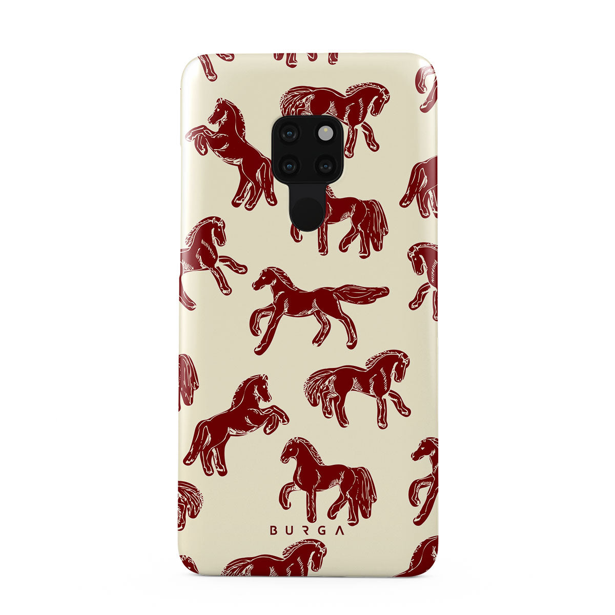 It's time to unleash your wild side with the Mustang design. Bold red horses gallop across a nude background, capturing the spirit of untamed adventure. This Huawei Mate 20 phone case is perfect for the free-spirited souls ready to ride into the unknown.