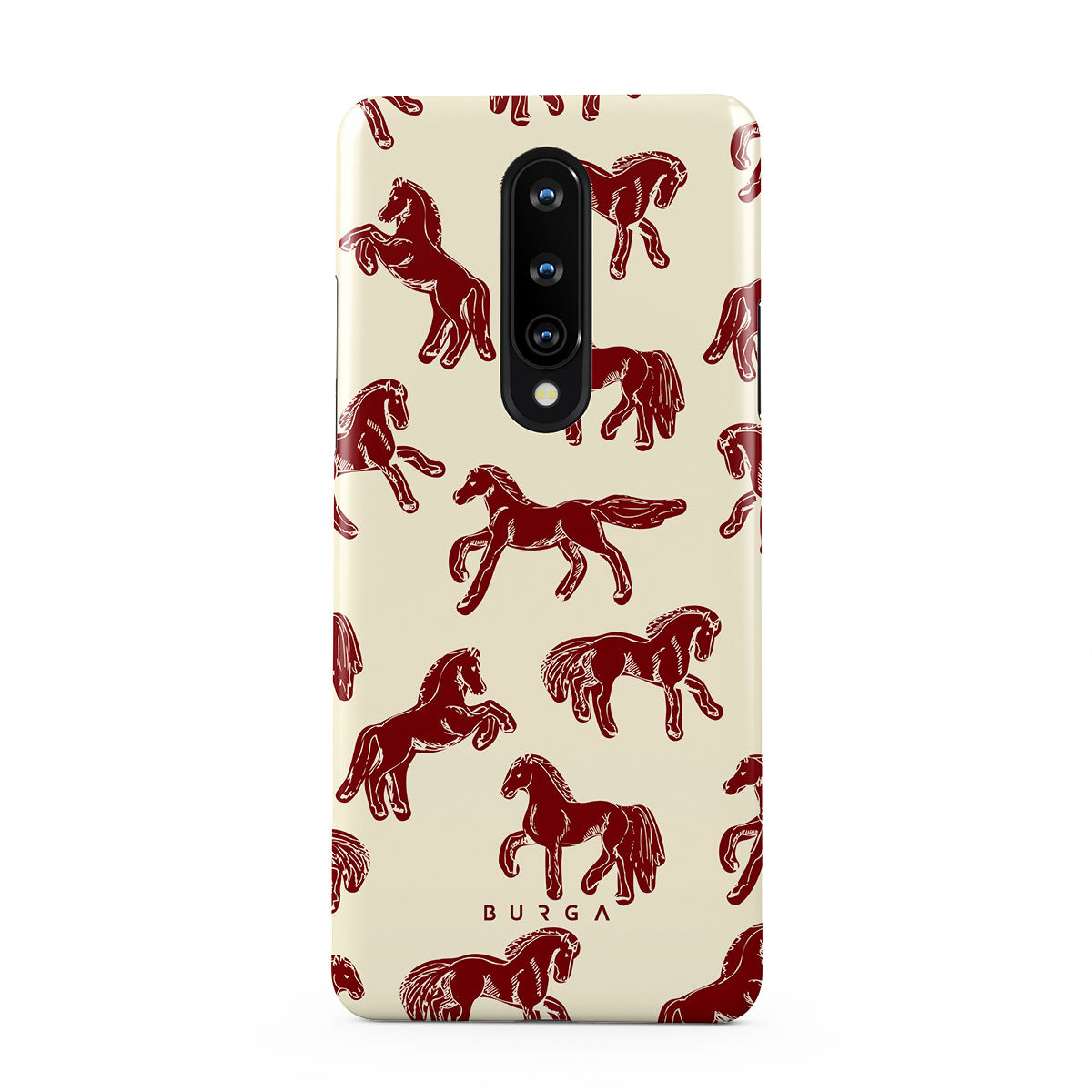 It's time to unleash your wild side with the Mustang design. Bold red horses gallop across a nude background, capturing the spirit of untamed adventure. This OnePlus 8 phone case is perfect for the free-spirited souls ready to ride into the unknown.