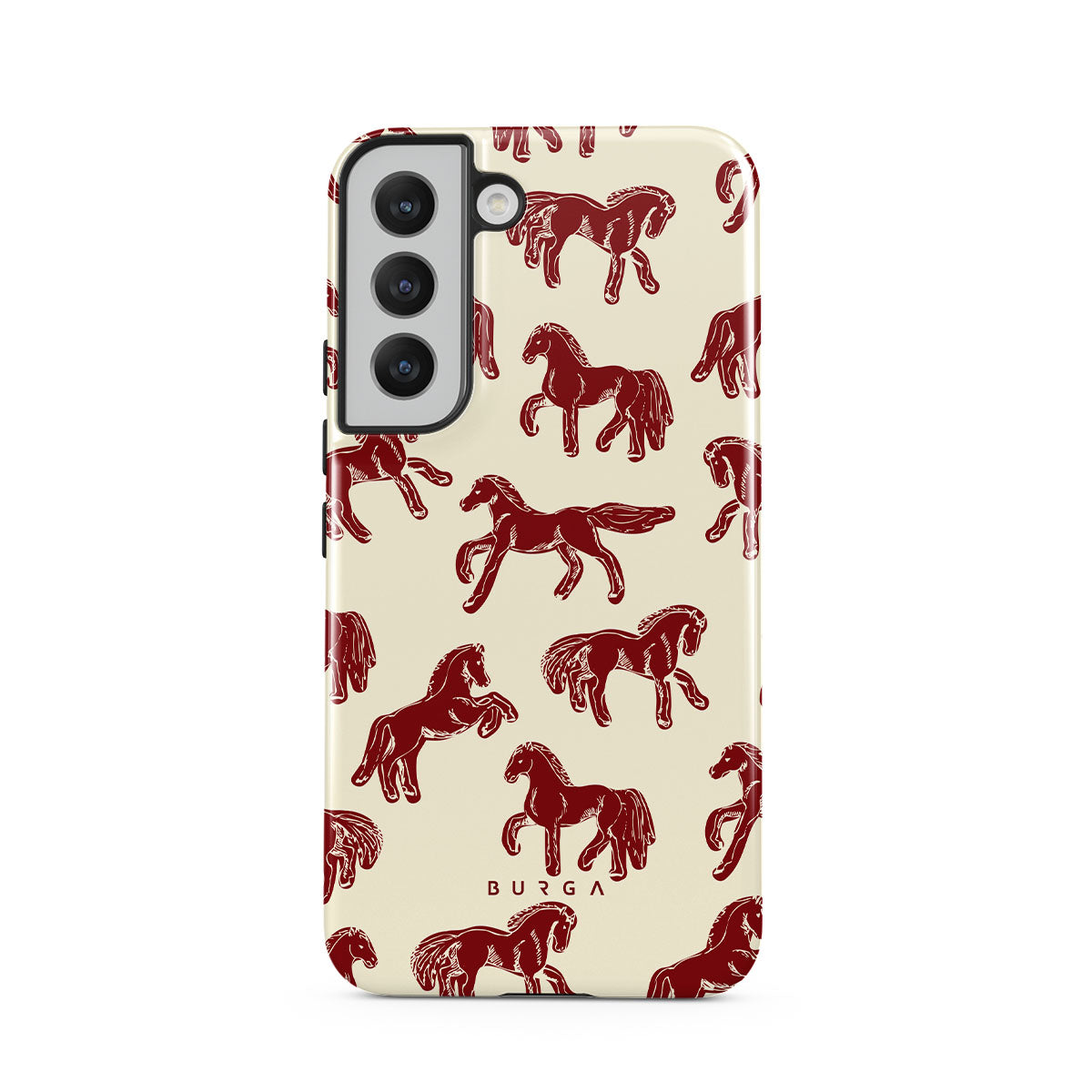 It's time to unleash your wild side with the Mustang design. Bold red horses gallop across a nude background, capturing the spirit of untamed adventure. This Samsung Galaxy S22 phone case is perfect for the free-spirited souls ready to ride into the unknown.