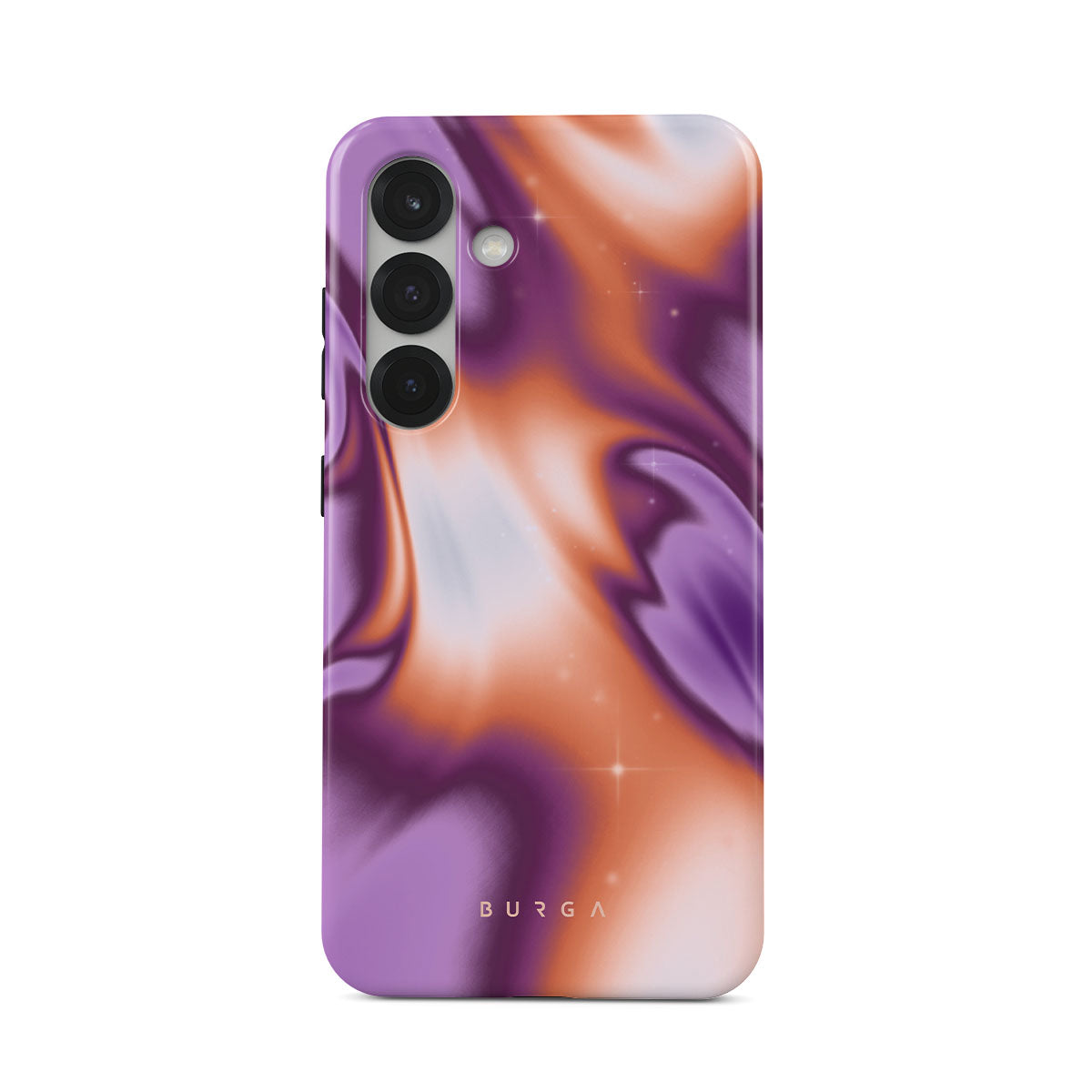 Dip into the Nebula, where runway glamour collides with cosmic seduction. Purple flames play upon a bright canvas, showcasing the fiery dance of distant galaxies. Our Nebula Samsung Galaxy S25 phone case is a piece of the universe, sparking conversations with its vibrant, otherworldly beauty.