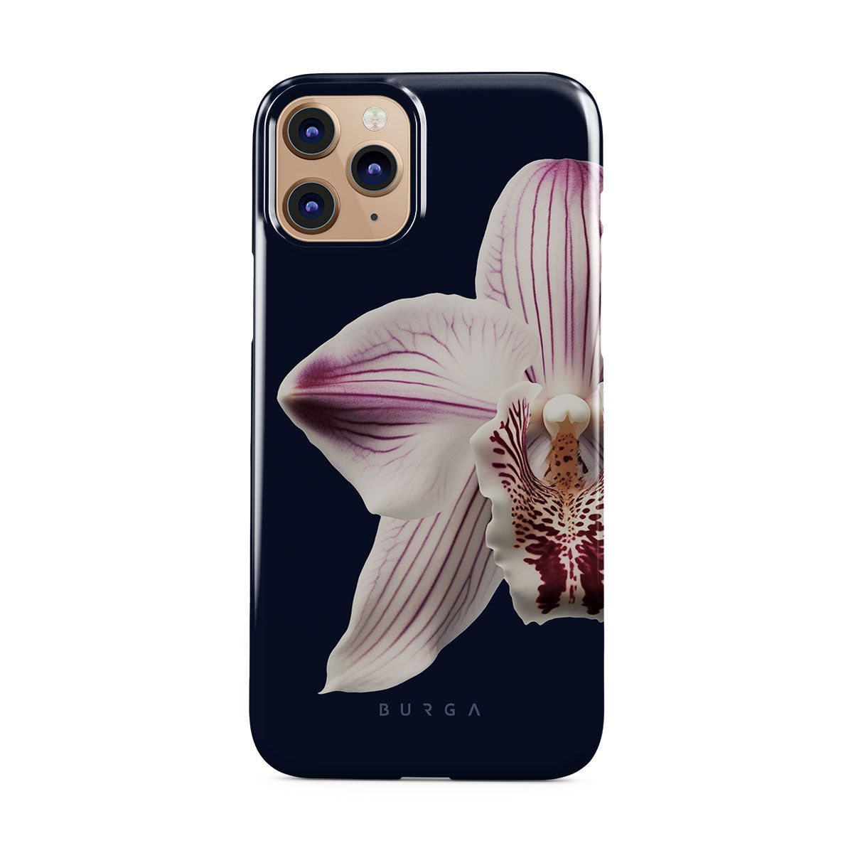 The white orchid blooms boldly upon a night sky blue, a beacon of clarity in the darkness. Our Nectar iPhone 11 Pro Max phone case design speaks to the soul's desire to find light within, to illuminate the hidden paths of self-discovery that only reveal themselves under the cloak of introspection.
