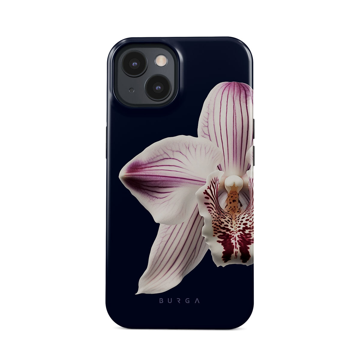 The white orchid blooms boldly upon a night sky blue, a beacon of clarity in the darkness. Our Nectar iPhone 15 Plus phone case design speaks to the soul's desire to find light within, to illuminate the hidden paths of self-discovery that only reveal themselves under the cloak of introspection.