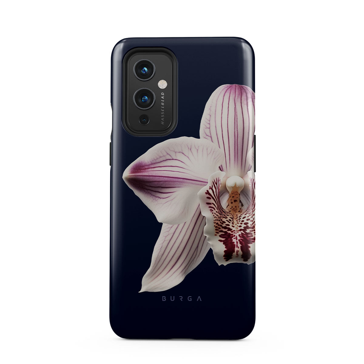 The white orchid blooms boldly upon a night sky blue, a beacon of clarity in the darkness. Our Nectar OnePlus 9 phone case design speaks to the soul's desire to find light within, to illuminate the hidden paths of self-discovery that only reveal themselves under the cloak of introspection.