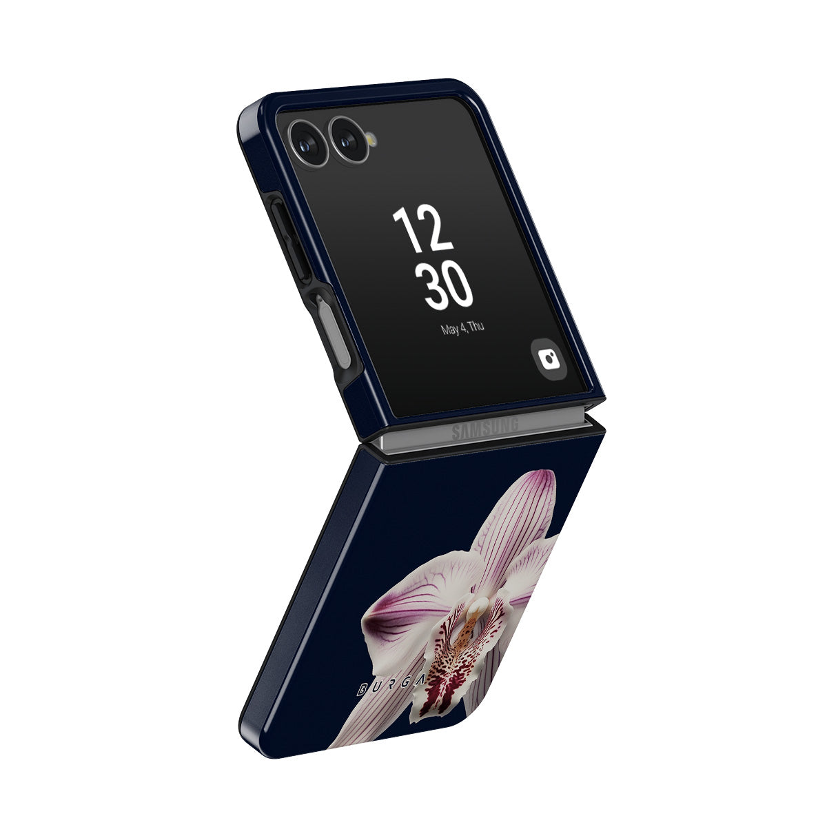 The white orchid blooms boldly upon a night sky blue, a beacon of clarity in the darkness. Our Nectar Samsung Galaxy Z Flip 7 phone case design speaks to the soul's desire to find light within, to illuminate the hidden paths of self-discovery that only reveal themselves under the cloak of introspection.