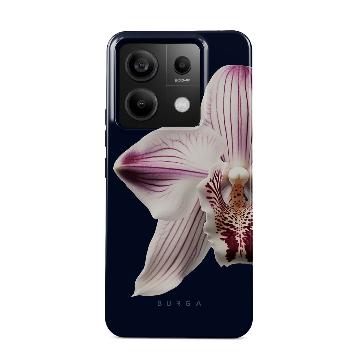 The white orchid blooms boldly upon a night sky blue, a beacon of clarity in the darkness. Our Nectar Xiaomi Redmi Note 13 Pro 5G phone case design speaks to the soul's desire to find light within, to illuminate the hidden paths of self-discovery that only reveal themselves under the cloak of introspection.
