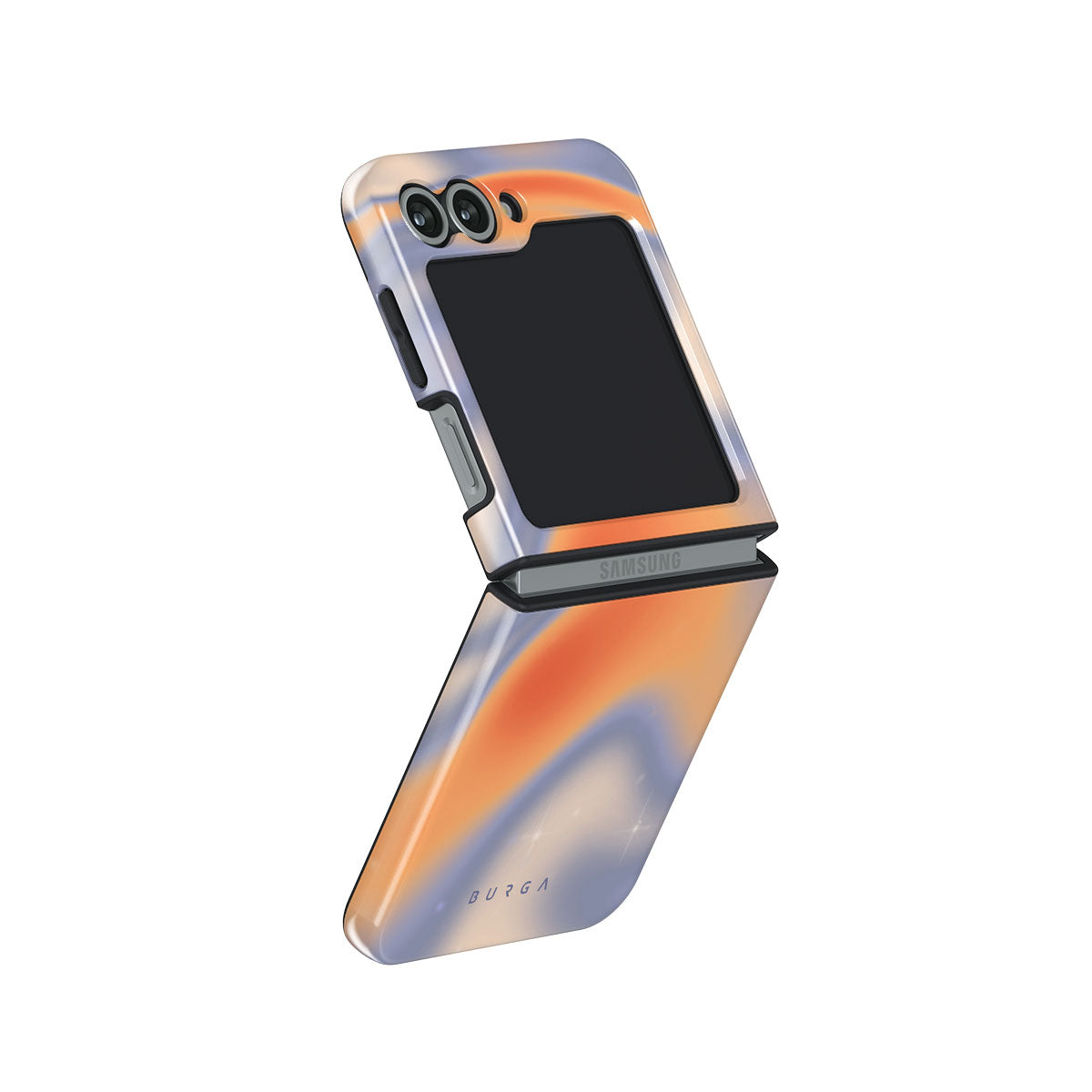 Magnetic gray rays encounter fiery orange bursts, merging nature's drama with high-fashion flair. In meteorology, a nimbus cloud heralds rain, symbolizing rebirth and fresh starts. Drawing inspiration from this, our Nimbus Samsung Galaxy Z Flip 6 phone case design ensures you are the center of attention—wherever you go.