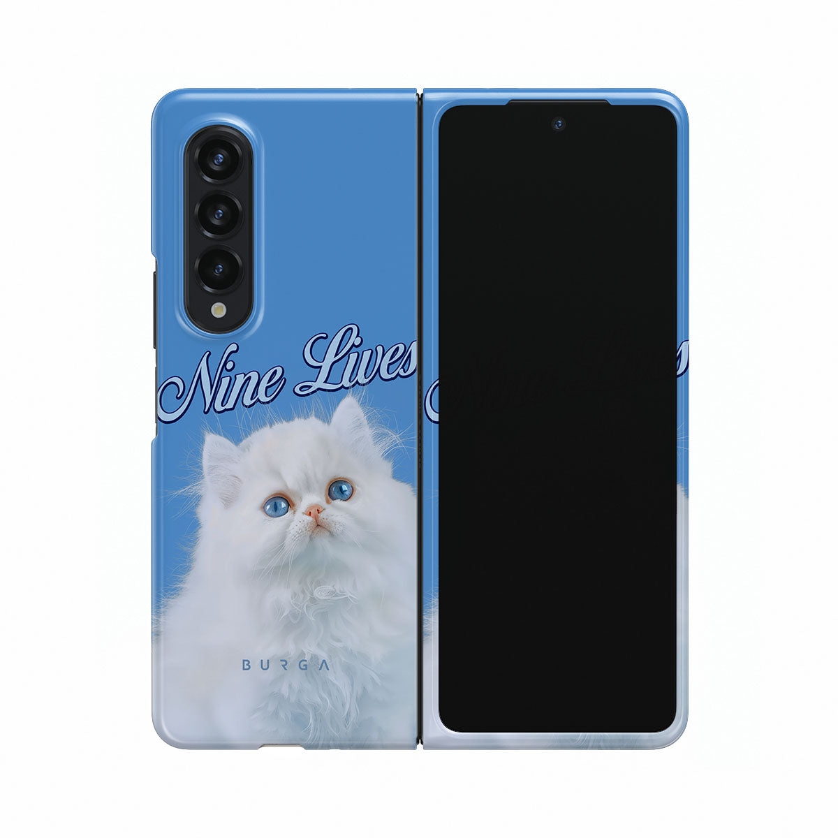 Channel your inner diva with our Nine Lives Samsung Galaxy Z Fold 3 phone case. It's luxe, plush, and purr-fectly fabulous, with just enough fluff to show you mean business.