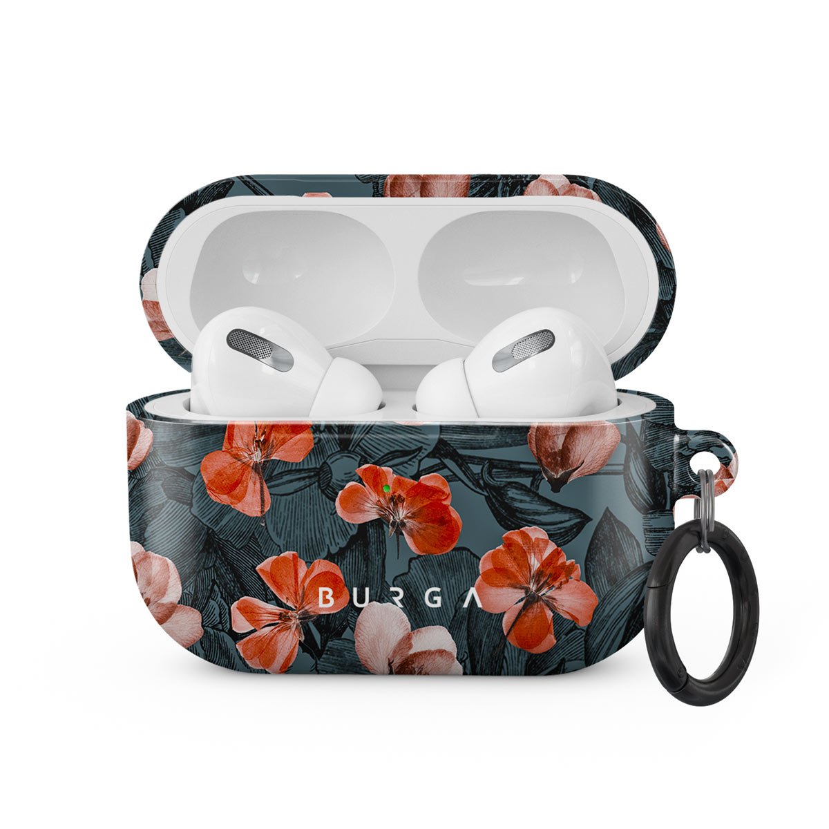 Greenish blues and soft pink flowers look stunning in our No Rain No Flowers Apple Airpods Pro case cover. The floral cover will surely add a touch of elegance to your style while protecting y Our case from scratches and dents. Our case fits perfectly snug around Apple Airpods Pro . “Like a glove!” one might say. And it won’t disrupt the wireless charging capabilities of the newer model. There’s even an LED light indicator to prove it (don’t worry, wired charging still works, too). When fitted, the BURGA case will protect the delicate Apple Airpods Pro case beneath it from scratches, bumps, and drops while remaining scratch-free itself. Our signature design pattern prints are High Quality, and will never peel or fade away- thanks to our unique printing technology. And finally, a handy carabiner is there to make your life easier and more convenient: just snap it around your keys or belt loop and tackle the day head-on. Your music is right there by your side when you need it.