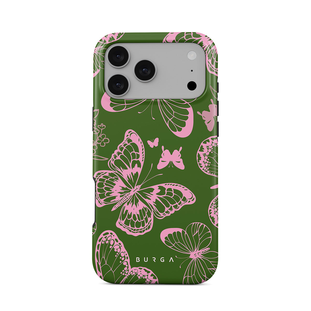 A retro-inspired masterpiece, this iPhone 17 Pro Max phone case features a delightful butterfly print that's sure to take you on a trip down memory lane. Inspired by the carefree spirit of the groovy era, this case reminds you to live your best life with No Regrets and embrace every moment. With this enchanting case design, you'll be ready to spread your wings and fly high, with nothing holding you back.