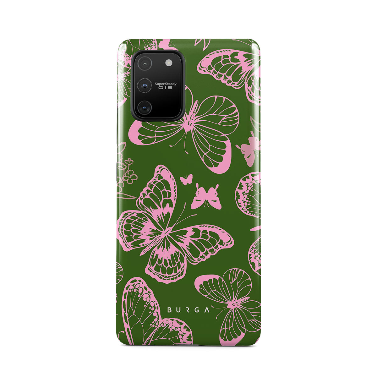 A retro-inspired masterpiece, this Samsung Galaxy S10 Lite phone case features a delightful butterfly print that's sure to take you on a trip down memory lane. Inspired by the carefree spirit of the groovy era, this case reminds you to live your best life with No Regrets and embrace every moment. With this enchanting case design, you'll be ready to spread your wings and fly high, with nothing holding you back.