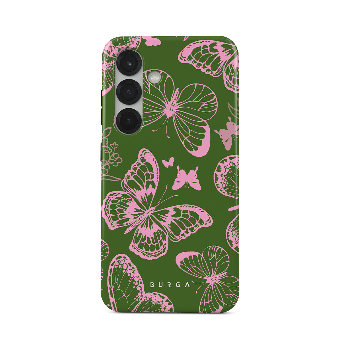 A retro-inspired masterpiece, this Samsung Galaxy S25 Plus phone case features a delightful butterfly print that's sure to take you on a trip down memory lane. Inspired by the carefree spirit of the groovy era, this case reminds you to live your best life with No Regrets and embrace every moment. With this enchanting case design, you'll be ready to spread your wings and fly high, with nothing holding you back.