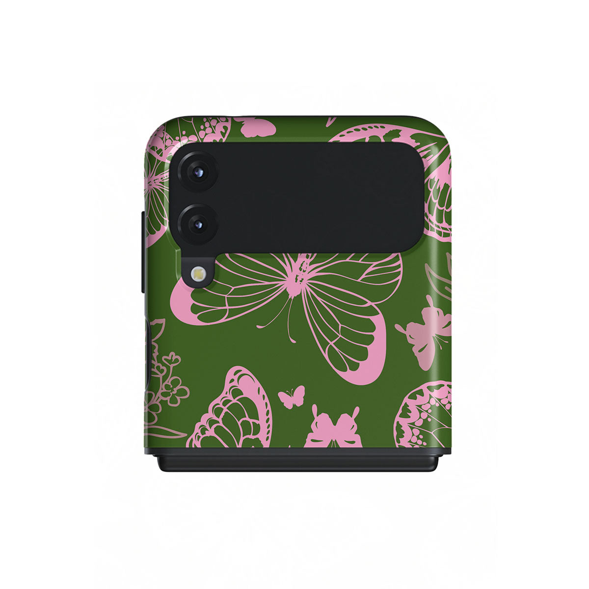 A retro-inspired masterpiece, this Samsung Galaxy Z Flip 3 phone case features a delightful butterfly print that's sure to take you on a trip down memory lane. Inspired by the carefree spirit of the groovy era, this case reminds you to live your best life with No Regrets and embrace every moment. With this enchanting case design, you'll be ready to spread your wings and fly high, with nothing holding you back.