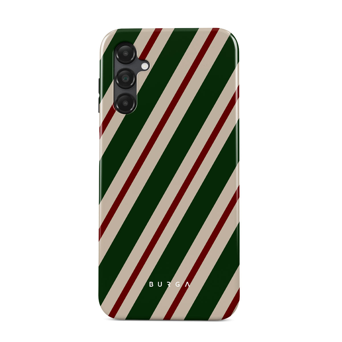 A joyful design that screams holiday spirit. Our North Pole Samsung Galaxy A14 5G Case phone case transports you straight to Santa's workshop. Bold green, red, and white stripes echo the joy and laughter of elves preparing for the festive season.