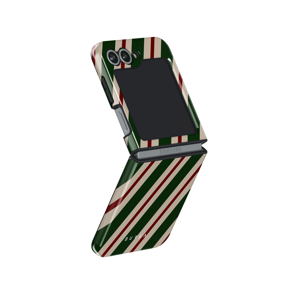 A joyful design that screams holiday spirit. Our North Pole Samsung Galaxy Z Flip 6 Case phone case transports you straight to Santa's workshop. Bold green, red, and white stripes echo the joy and laughter of elves preparing for the festive season.