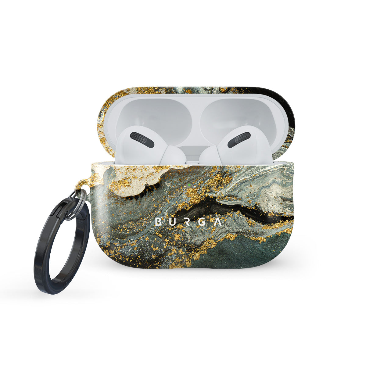 Apple AirPods Pro 3 case cover design combine moss green shades with gold specks in a luxurious marble pattern. The asymmetrical design reminding of a star map will add a touch of luxury and mystery to every accessory lover's collection. Our case fits perfectly snug around Apple AirPods Pro 3 . “Like a glove!” one might say. And it won’t disrupt the wireless charging capabilities of the newer model. There’s even an LED light indicator to prove it (don’t worry, wired charging still works, too). When fitted, the BURGA case will protect the delicate Apple AirPods Pro 3 case beneath it from scratches, bumps, and drops while remaining scratch-free itself. Our signature design pattern prints are High Quality, and will never peel or fade away- thanks to our unique printing technology. And finally, a handy carabiner is there to make your life easier and more convenient: just snap it around your keys or belt loop and tackle the day head-on. Your music is right there by your side when you need it.