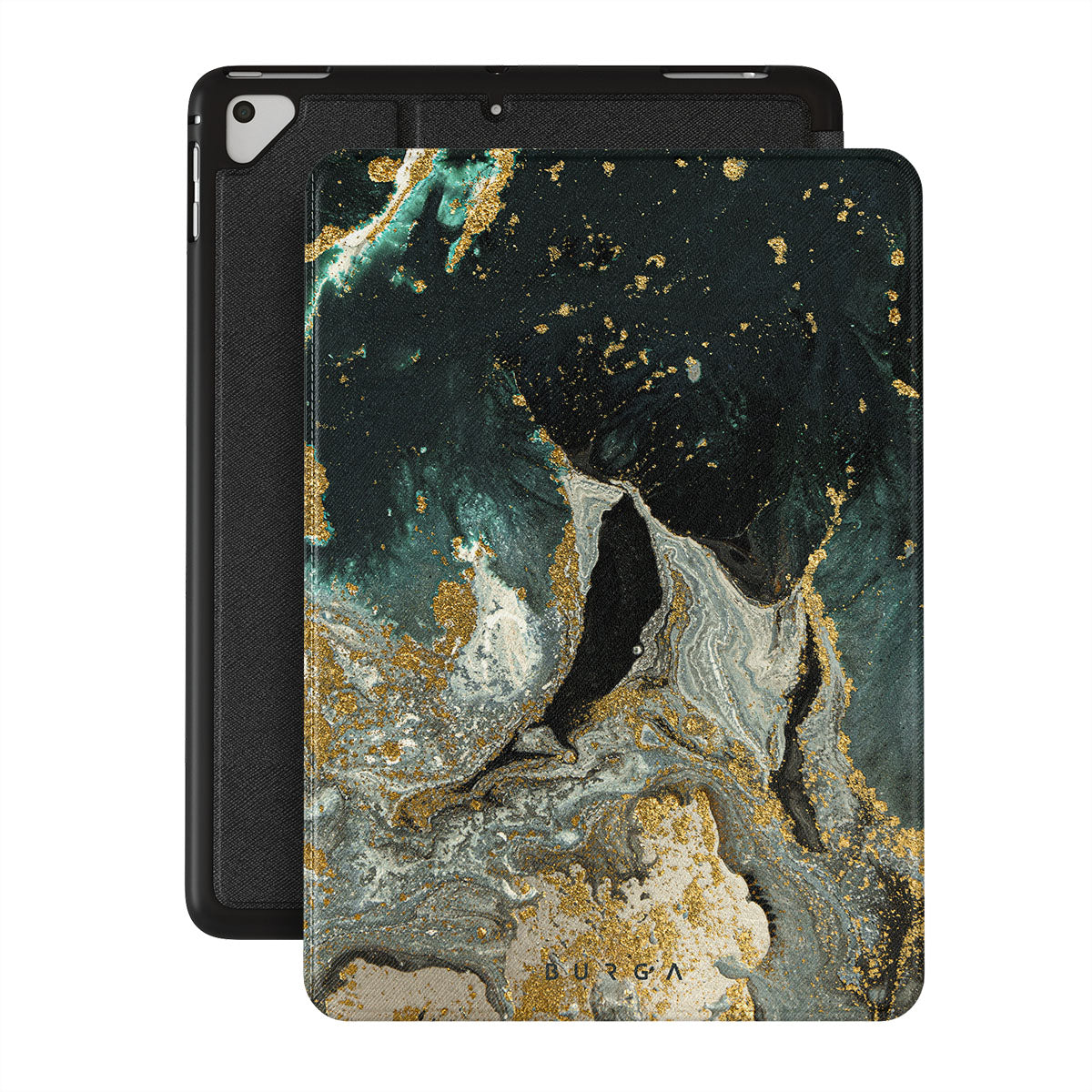 Our cute marble Northern Lights iPad 9.7 (6th/5th Gen) folio case showcases a combination of moss green shades in a marble pattern enriched with golden specks. The asymmetrical design reminding of a star map will add a touch of luxury and mystery to every accessory lover's collection.