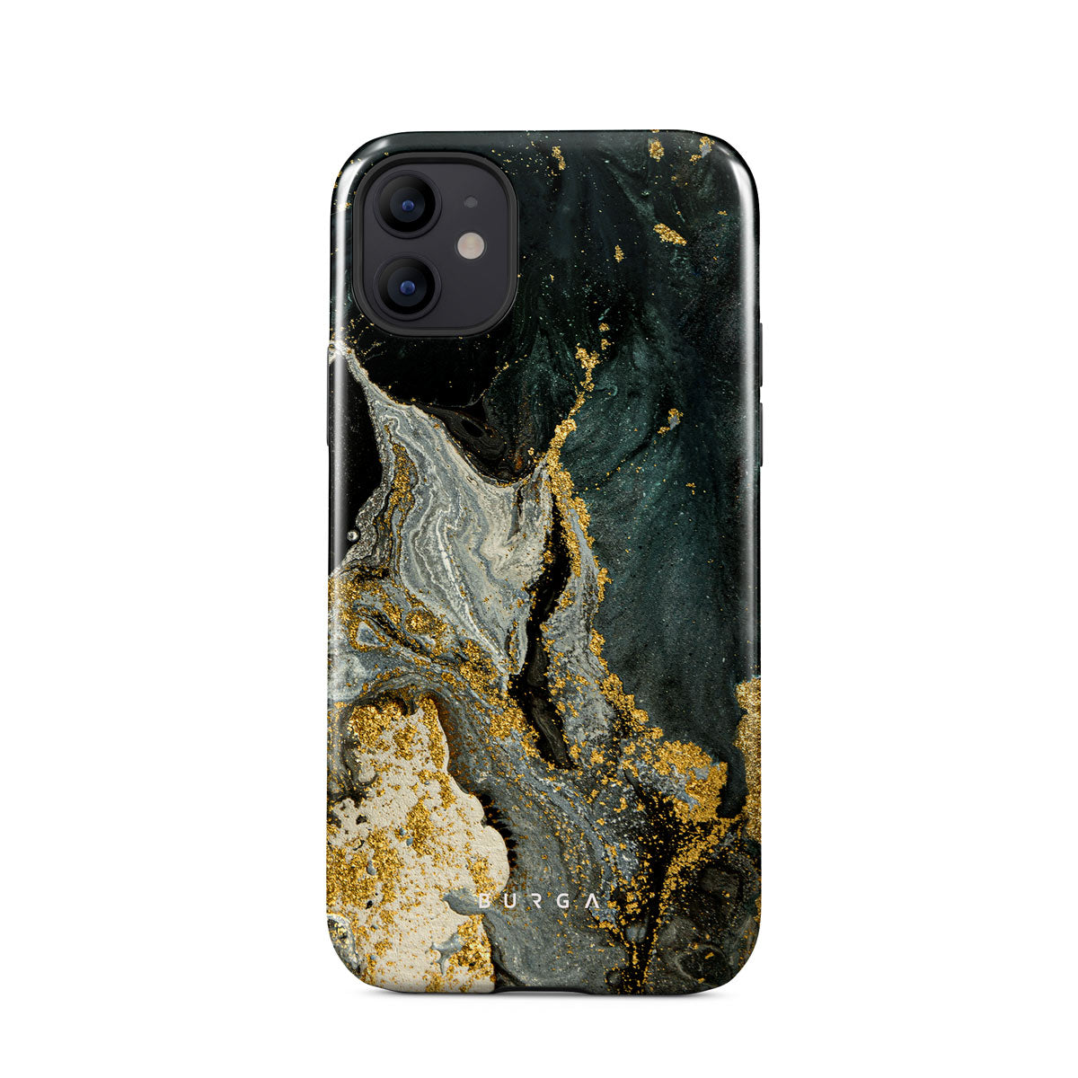 Our cute marble Northern Lights iPhone 12 phone case showcases a combination of moss green shades in a marble pattern enriched with golden specks. The asymmetrical design reminding of a star map will add a touch of luxury and mystery to every accessory lover's collection.