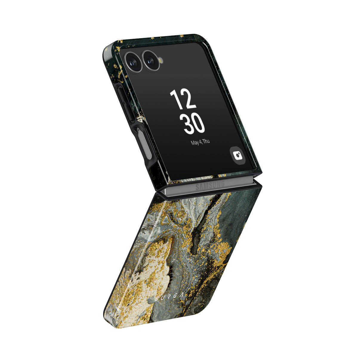 Our cute marble Northern Lights Samsung Galaxy Z Flip 7 phone case showcases a combination of moss green shades in a marble pattern enriched with golden specks. The asymmetrical design reminding of a star map will add a touch of luxury and mystery to every accessory lover's collection.