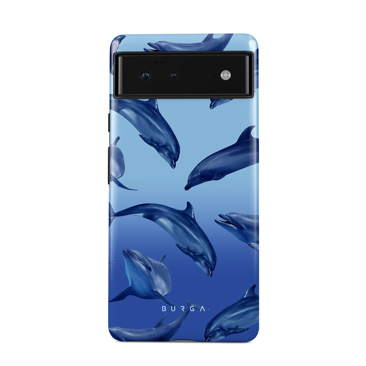 Our Ocean Cowboy Google Pixel 6 Pro phone case features majestic dolphins soaring across a sapphire ocean, symbolizing the untamed beauty and mystery of the deep blue. It's a call to the wild, right in your hands.