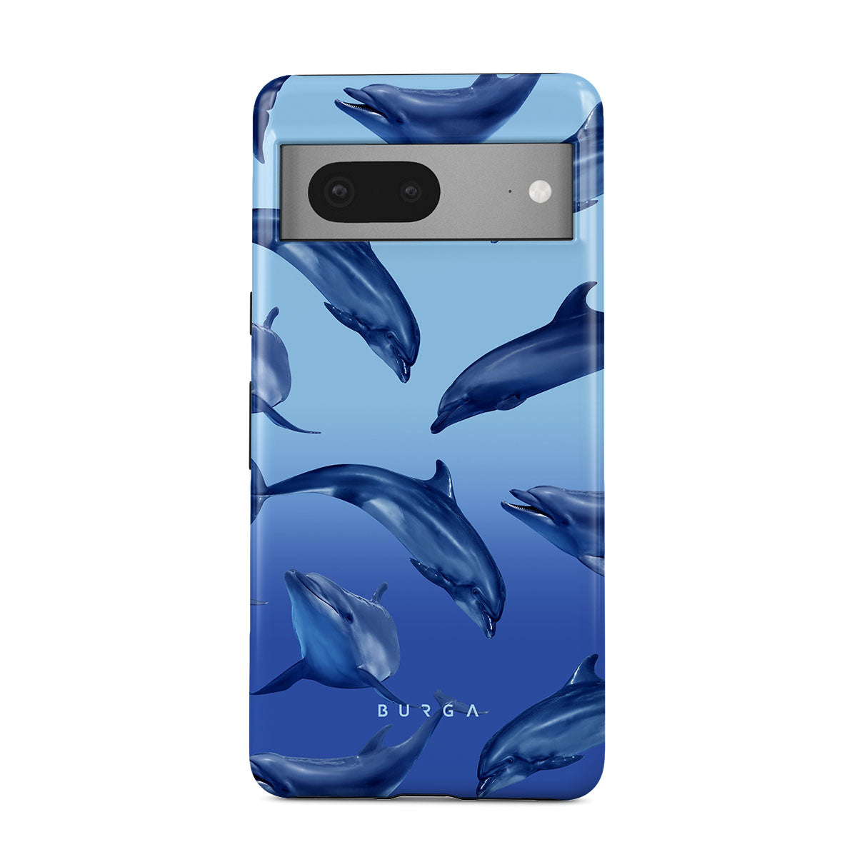 Our Ocean Cowboy Google Pixel 7a phone case features majestic dolphins soaring across a sapphire ocean, symbolizing the untamed beauty and mystery of the deep blue. It's a call to the wild, right in your hands.