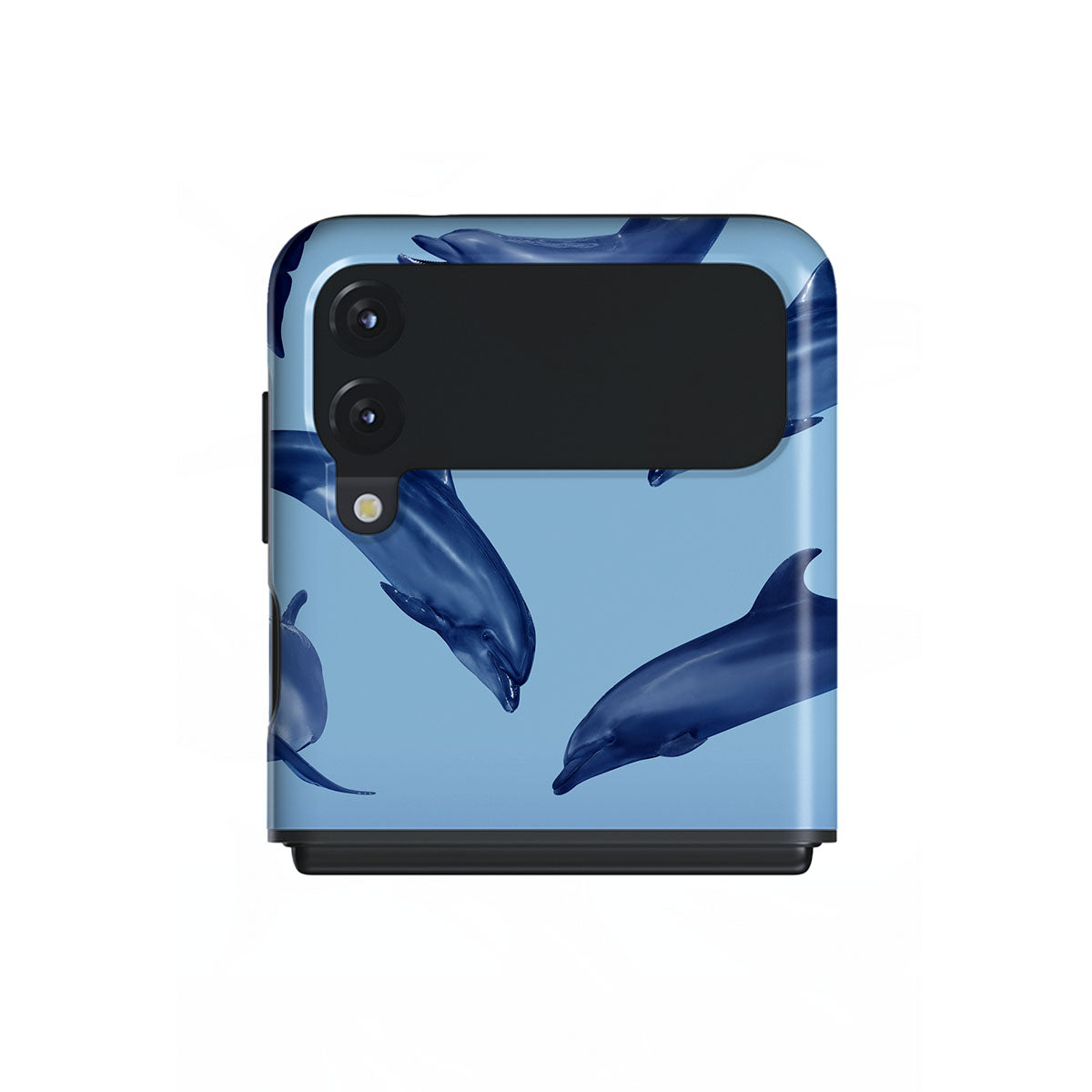 Our Ocean Cowboy Samsung Galaxy Z Flip 3 phone case features majestic dolphins soaring across a sapphire ocean, symbolizing the untamed beauty and mystery of the deep blue. It's a call to the wild, right in your hands.