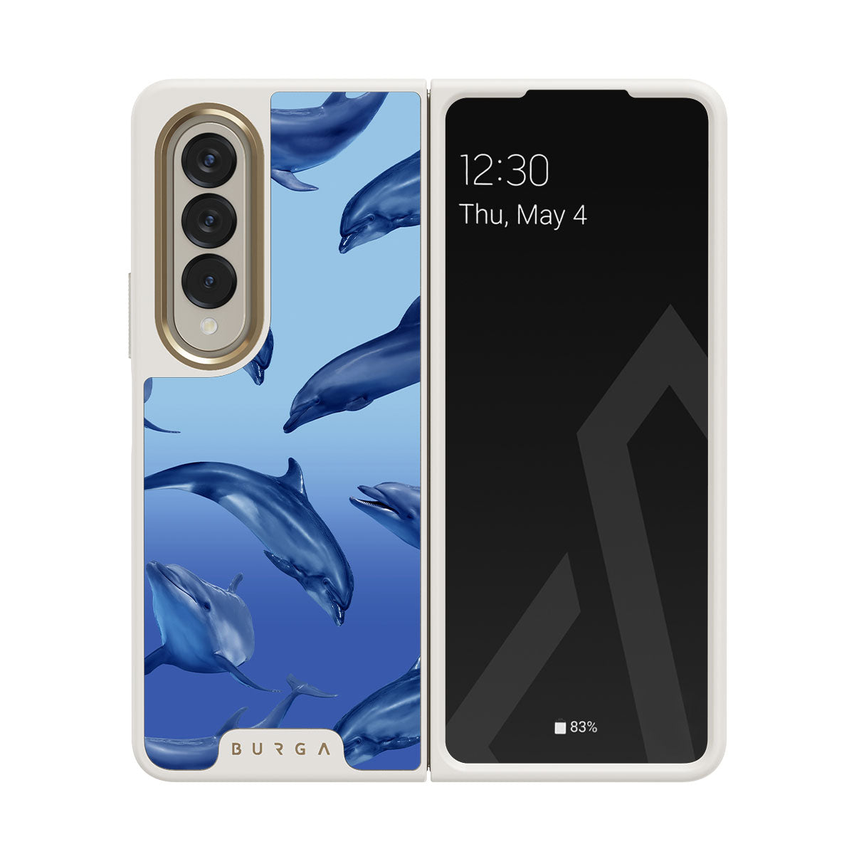 Our Ocean Cowboy Samsung Galaxy Z Fold 4 phone case features majestic dolphins soaring across a sapphire ocean, symbolizing the untamed beauty and mystery of the deep blue. It's a call to the wild, right in your hands.