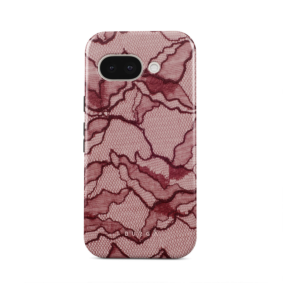 Channel your inner power with our Office Siren Google Pixel 9a phone case design. A soft rosé backdrop and dark pink lace blend elegance and boldness, perfect for those who make quiet yet undeniable statements with confidence.