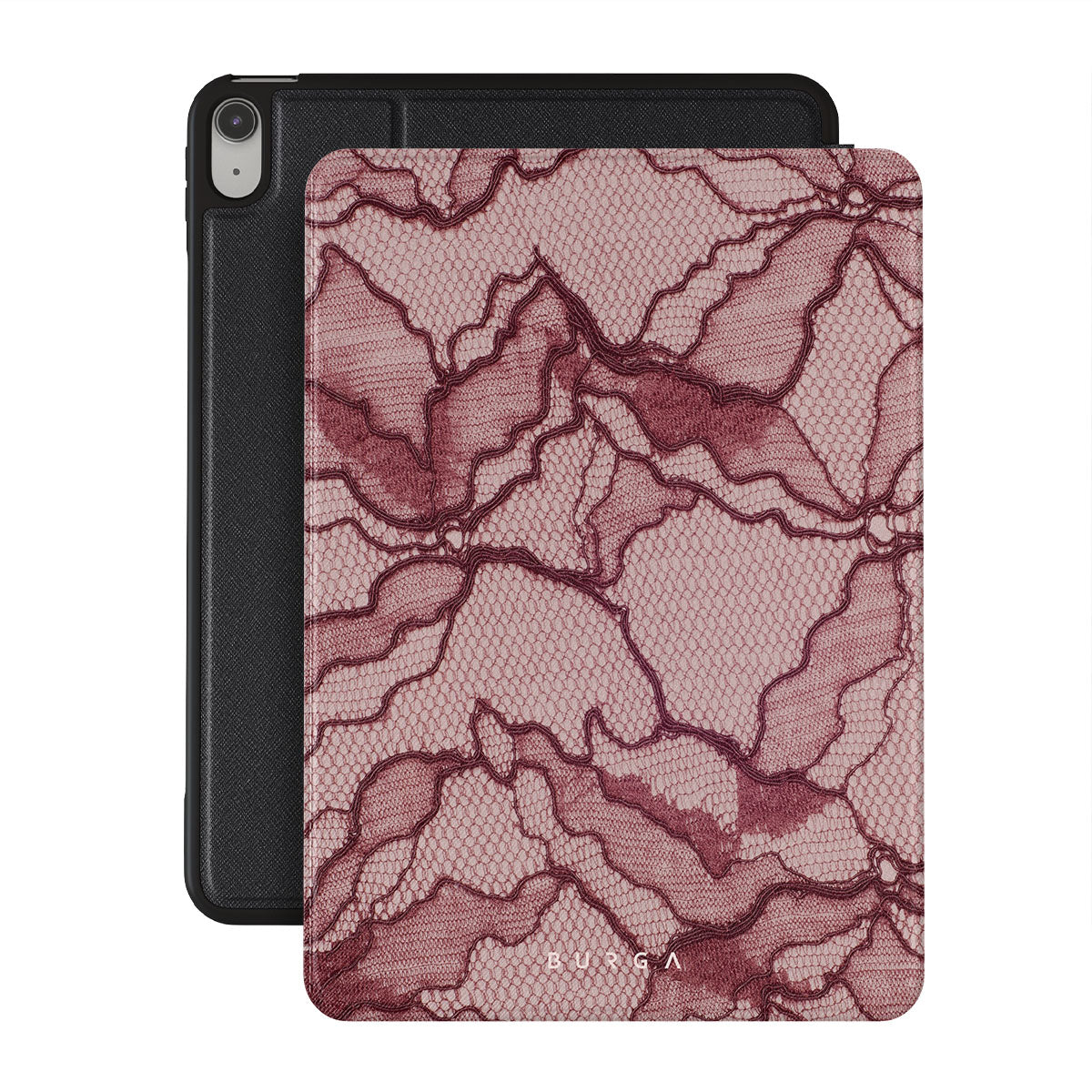 Channel your inner power with our Office Siren iPad 10.9 (A16/10th Gen) folio case design. A soft rosé backdrop and dark pink lace blend elegance and boldness, perfect for those who make quiet yet undeniable statements with confidence.
