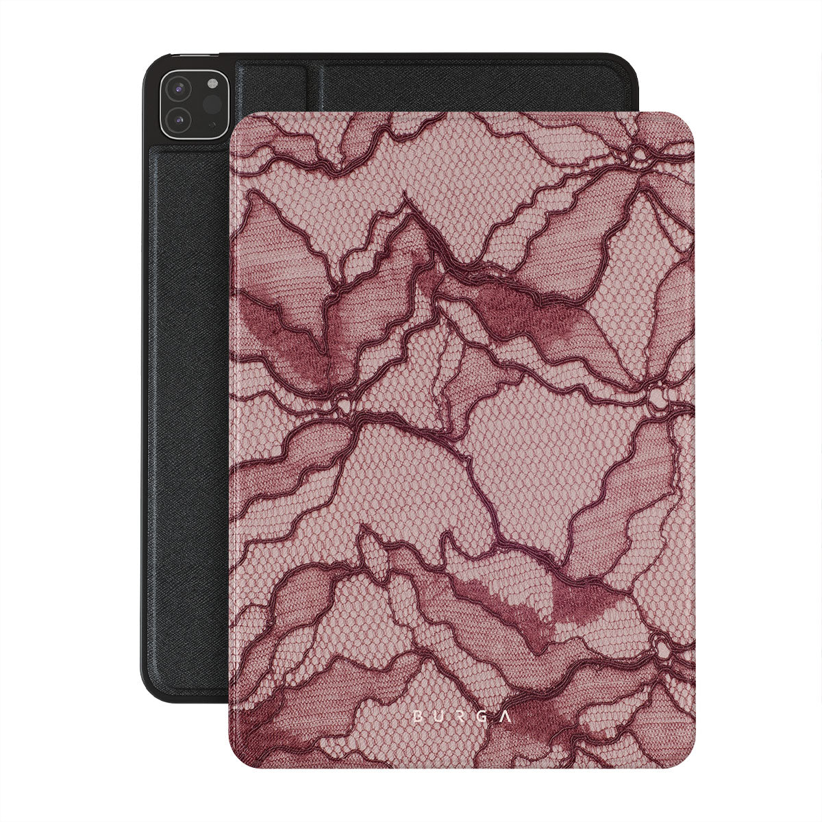 Channel your inner power with our Office Siren iPad Pro 12.9 (4th/3rd Gen) folio case design. A soft rosé backdrop and dark pink lace blend elegance and boldness, perfect for those who make quiet yet undeniable statements with confidence.