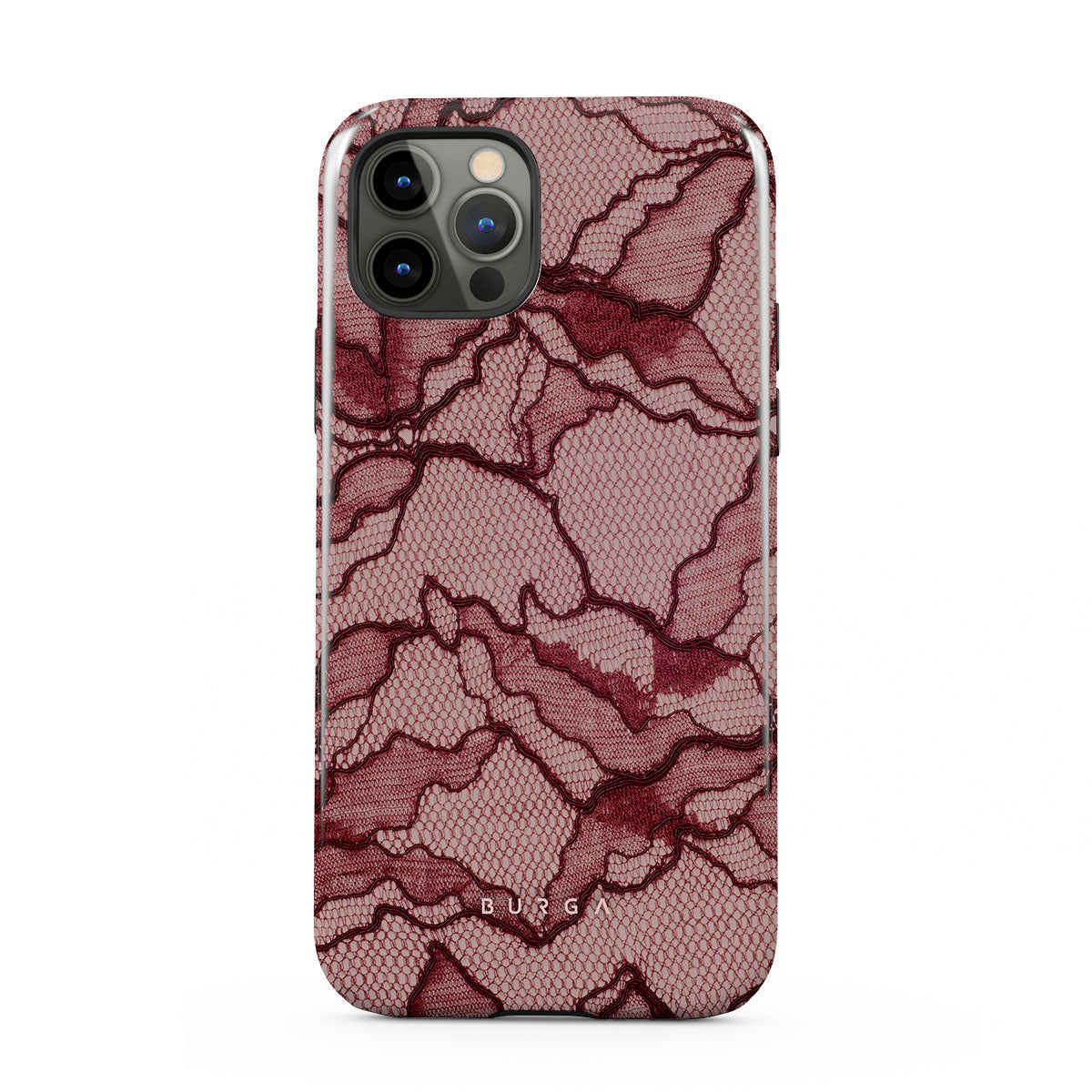 Channel your inner power with our Office Siren iPhone 12 Pro phone case design. A soft rosé backdrop and dark pink lace blend elegance and boldness, perfect for those who make quiet yet undeniable statements with confidence.