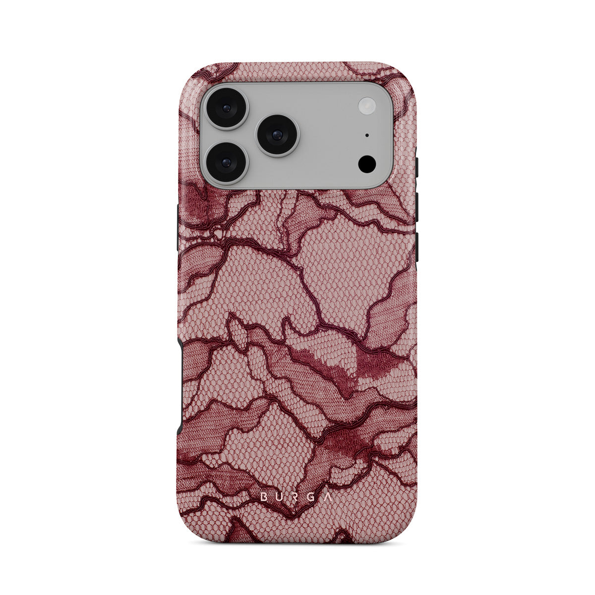 Channel your inner power with our Office Siren iPhone 17 Pro Max phone case design. A soft rosé backdrop and dark pink lace blend elegance and boldness, perfect for those who make quiet yet undeniable statements with confidence.