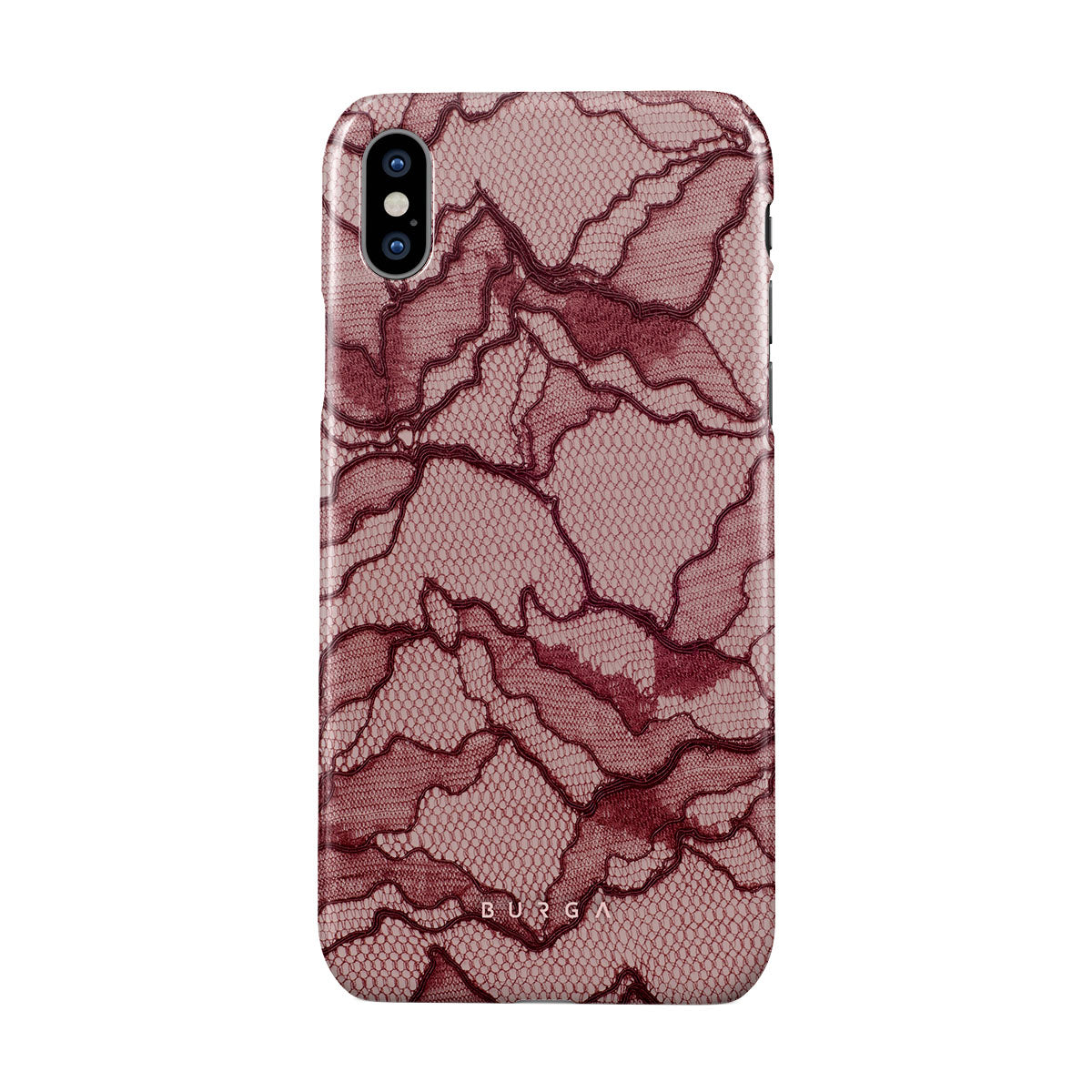 Channel your inner power with our Office Siren iPhone X / XS phone case design. A soft rosé backdrop and dark pink lace blend elegance and boldness, perfect for those who make quiet yet undeniable statements with confidence.