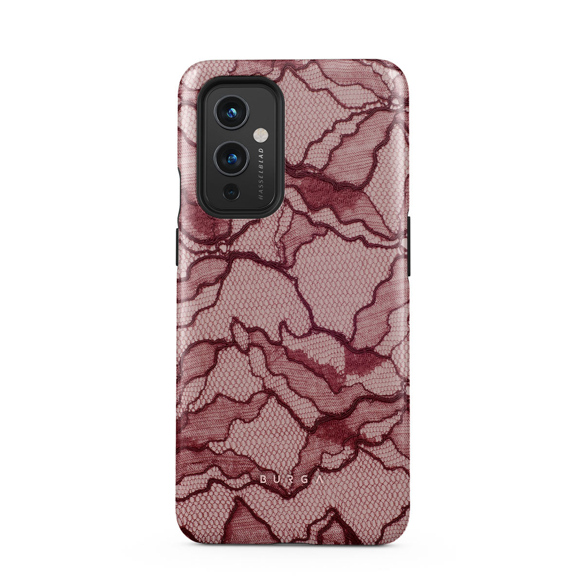 Channel your inner power with our Office Siren OnePlus 9 phone case design. A soft rosé backdrop and dark pink lace blend elegance and boldness, perfect for those who make quiet yet undeniable statements with confidence.