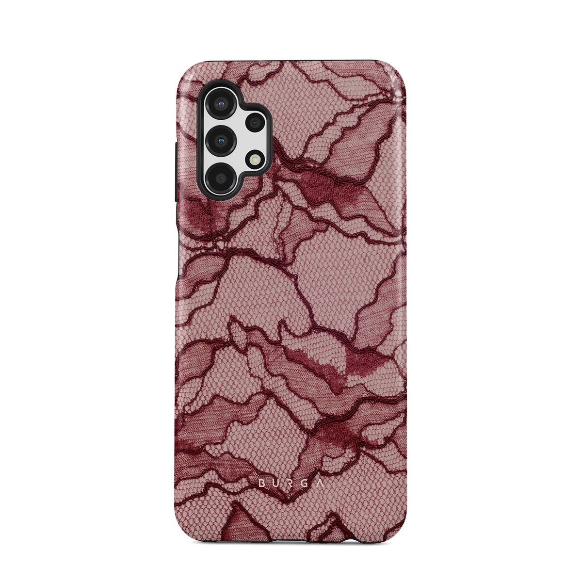Channel your inner power with our Office Siren Samsung Galaxy A13 4G phone case design. A soft rosé backdrop and dark pink lace blend elegance and boldness, perfect for those who make quiet yet undeniable statements with confidence.