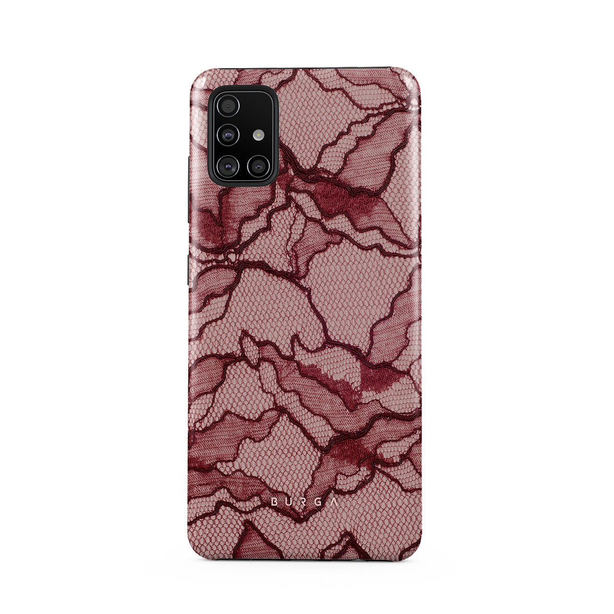 Channel your inner power with our Office Siren Samsung Galaxy A51 4G phone case design. A soft rosé backdrop and dark pink lace blend elegance and boldness, perfect for those who make quiet yet undeniable statements with confidence.