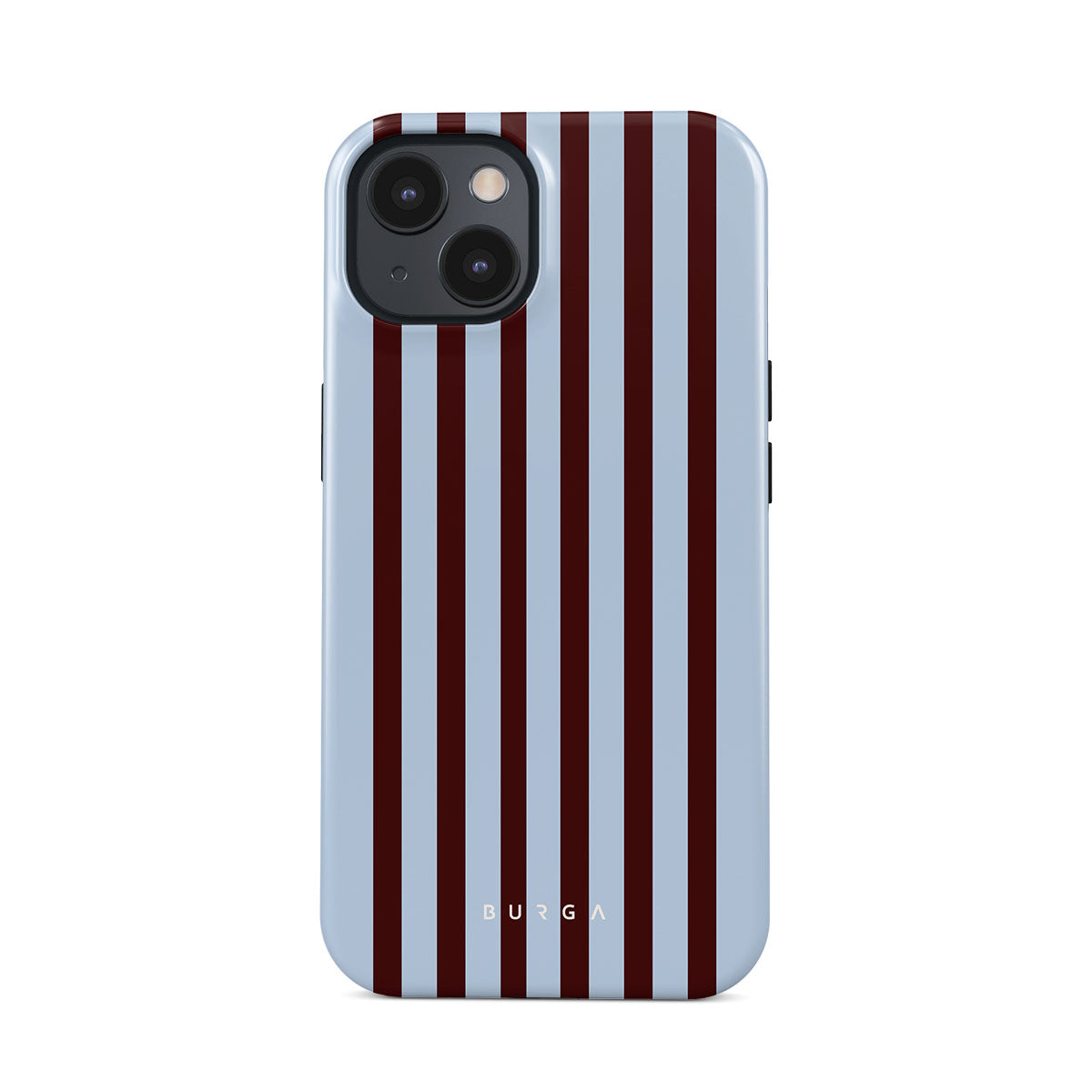 Brown, blue, and emotionally unavailable. This striped iPhone 15 Plus phone case design says, “I turned off my Slack notifications and found inner peace.” Or at least a cute aesthetic.