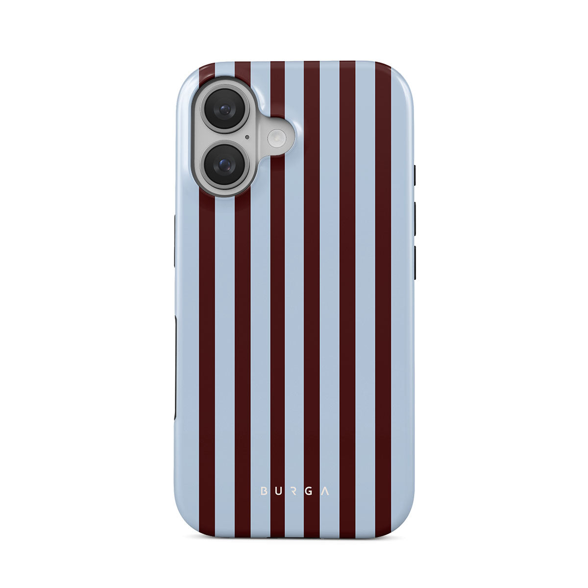 Brown, blue, and emotionally unavailable. This striped iPhone 16 phone case design says, “I turned off my Slack notifications and found inner peace.” Or at least a cute aesthetic.