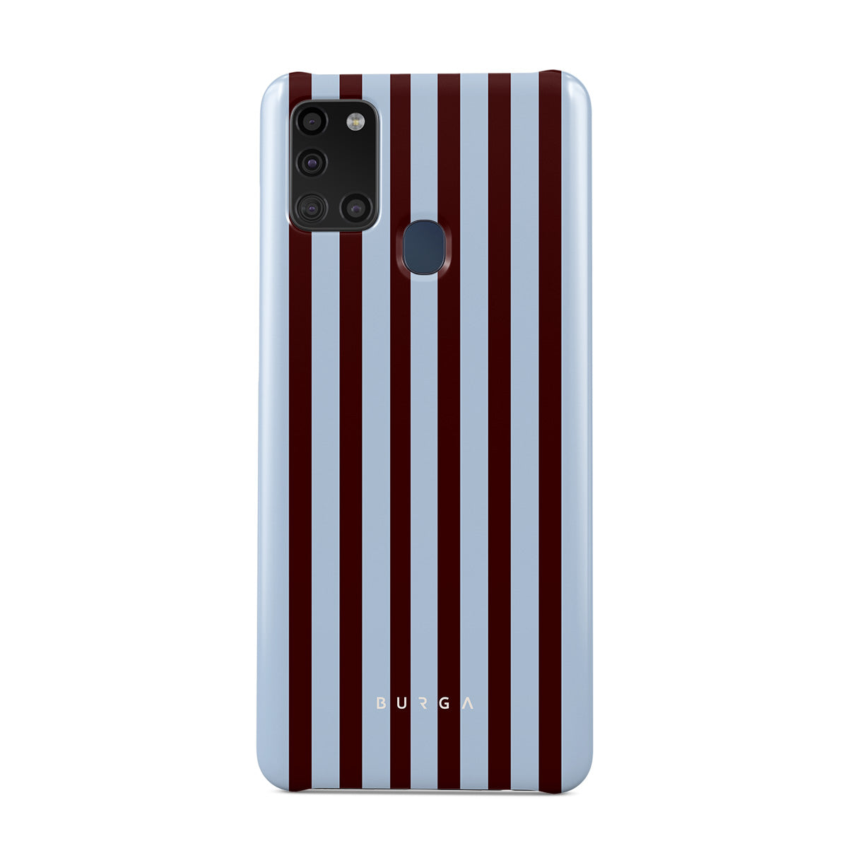 Brown, blue, and emotionally unavailable. This striped Samsung Galaxy A21s 4G phone case design says, “I turned off my Slack notifications and found inner peace.” Or at least a cute aesthetic.